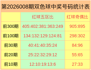 第2026008期双色球奖号数据统计表